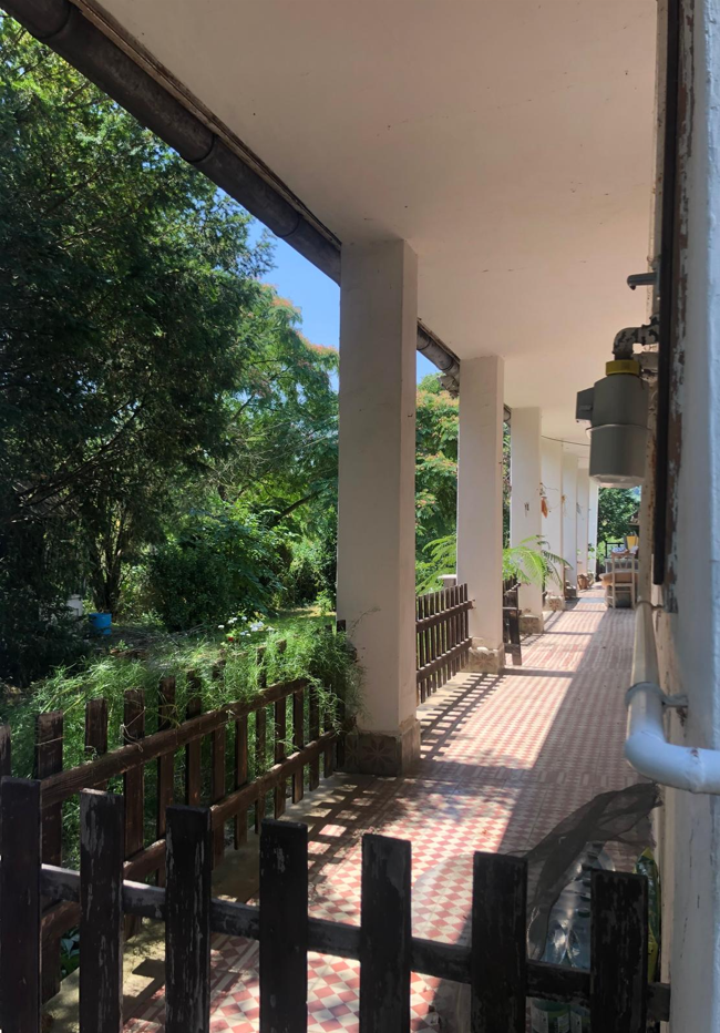 Das Grundstück ist nach Südsüdosten ausgerichtet und wird von einer Veranda auf der gesamten